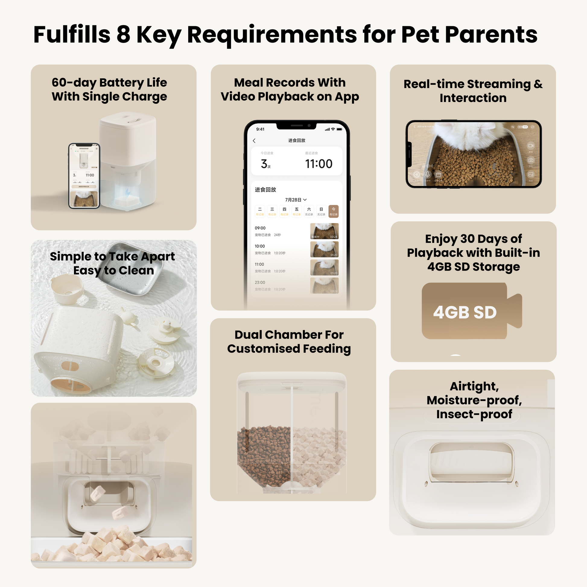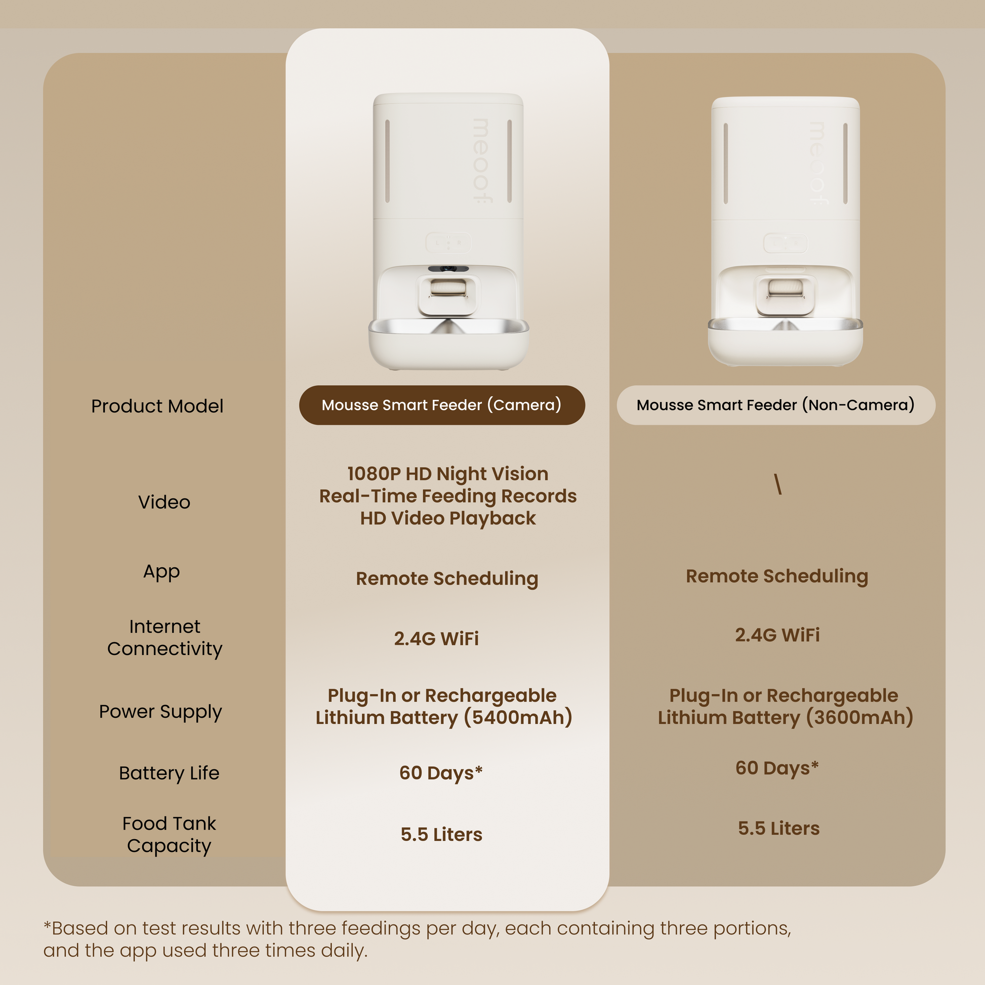 With our versatile and user-centric Mousse Smart Pet Feeder, you can enjoy the convenience of controlling your pet's meals from anywhere, while ensuring their health and well-being. Experience the satisfaction of a customized feeding plan and the peace of mind that comes with knowing your pet is well taken care of, all with unrivaled efficiency and flexibility.